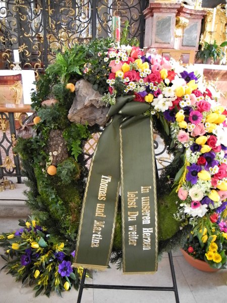 Bei Trauerfeiern und Gedenktagen lässt man Blumen sprechen. Sie spenden Trost sind Ausdruck für den Schmerz und Verlust. Der Kranz, ohne Anfang und Ende ist das Sysmbol der Auferstehung und des ewigen Lebens. Die Gestaltung einer Trauerfeier hängt vom persönlichen Empfinden ab. Im persönlichen Beratungsgespräch besprechen wir Ihre Vorstellungen, damit wir sie dann möglichst genau umsetzen können.